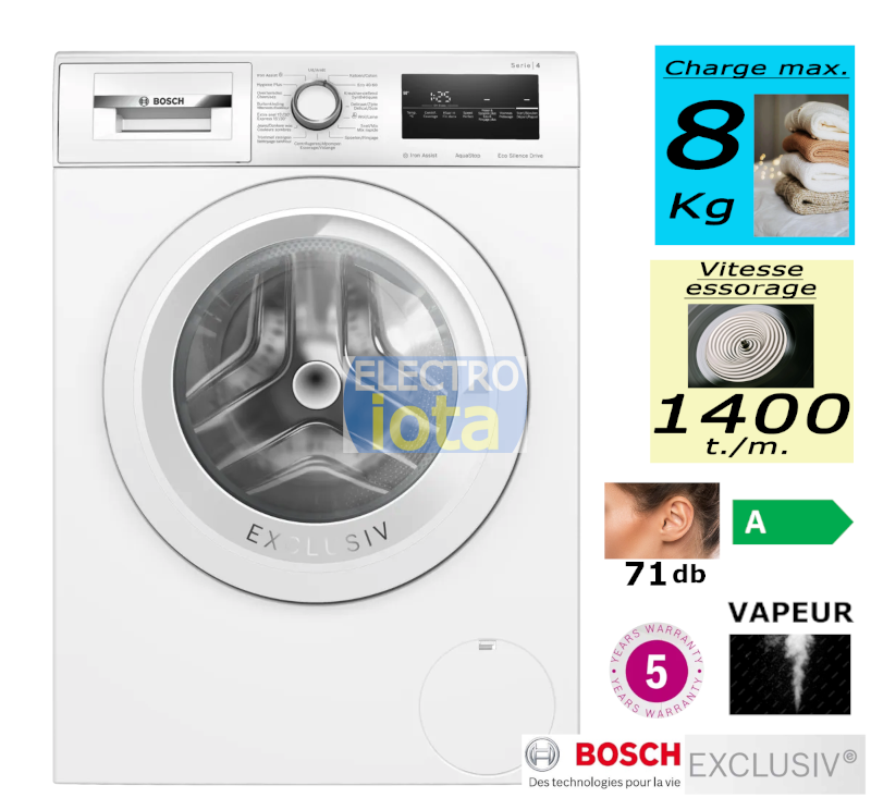 Informations sur le produit "BOSCH WAN2829FFG Series 4 lave-linge"